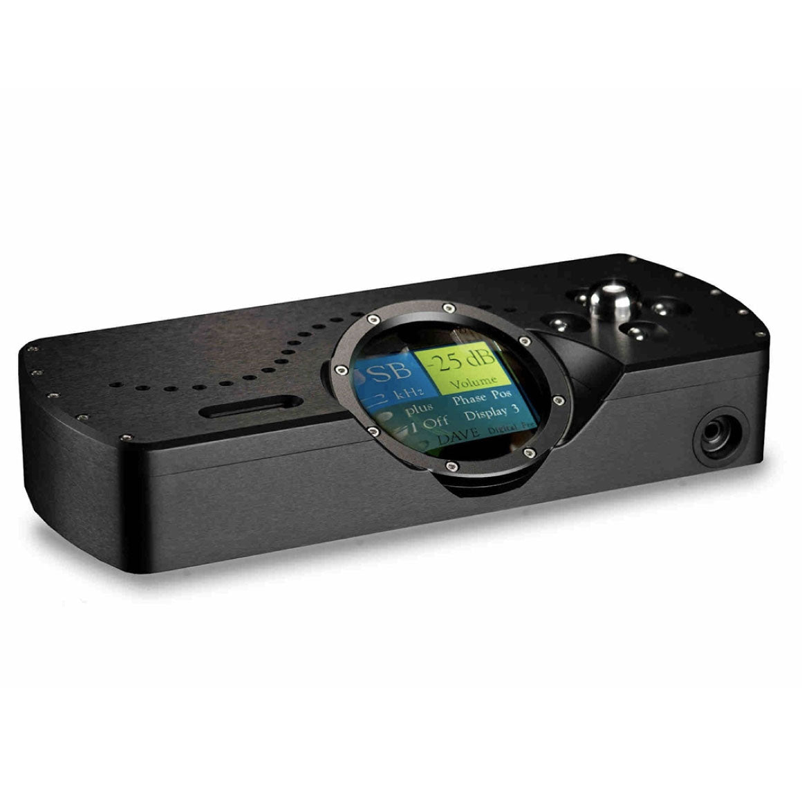 The DAVE uses Chord's famous porthole design which consists of a full-sized LCD display on a solid aluminium chassis, showing sample frequency, volume, input and set-up configuration options. A remote control, as well as the large stainless steel controller and ball buttons on the fascia, makes it easy to use. It comes with a rotary encoder.