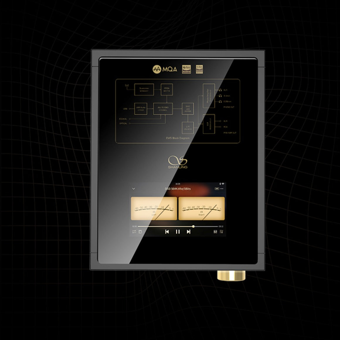 The audio architecture of the Shanling EM5 supports playback of high-resolution files. EM5 is capable of reading DSD file format up to DSD256 and also supports 8x MQA decoding. MQA format allows sound reproduction as close as possible to the quality of the original recordings. EM5 supports 8X MQA playback from locally stored files, streaming apps and over USB input. Thanks to the AGLO (Android Global Lossless Output), music from all apps is processed precisely and at its full quality, without any degradation. Embedding the latest technology EM5 is Hi-Res Audio and Hi-Res Wireless Audio Certifications from the Japan Audio Society. Thanks to 4 different gain settings, EM5 can be easily paired with a wide range of headphones, from sensitive IEMs to demanding full-size headphones.