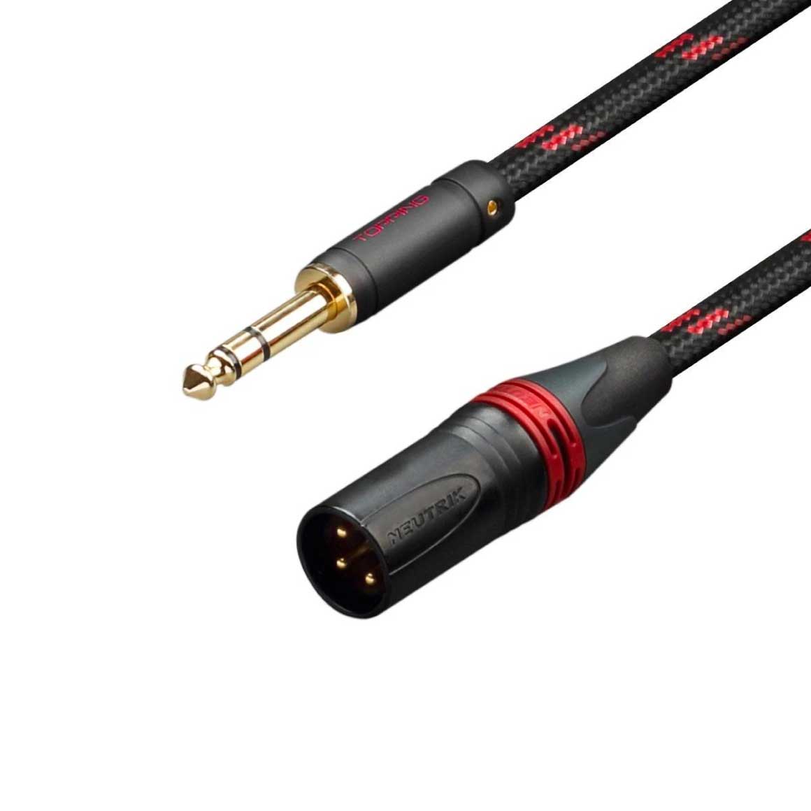 The Topping TCT2 cable offers a high-quality solution to connecting your audio devices and achieving perfect signal transmission. The TCT2 integrates 6N copper and 6N silver-plated copper conductors to achieve flawless transmission of audio. Each conductor in the cable has a section of 0.533mm² (19AWG), and the contacts of the connectors are gold plated to maintain an excellent conductivity while ensuring oxidation resistance. Each cable is coated with a beautiful and robust black and red braided nylon jacket. This cable features a Balanced 6.35mm TRS connector on one end and an XLR Male connector on the other end to connect to your devices. In the package, you will receive a velcro for cable management and you will find two individual audio cables that are colour coded for the left and right sides.