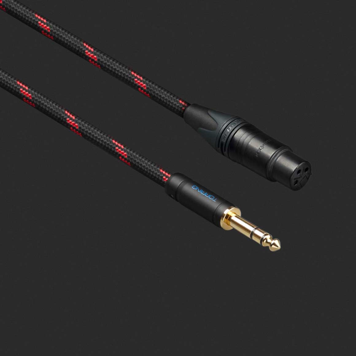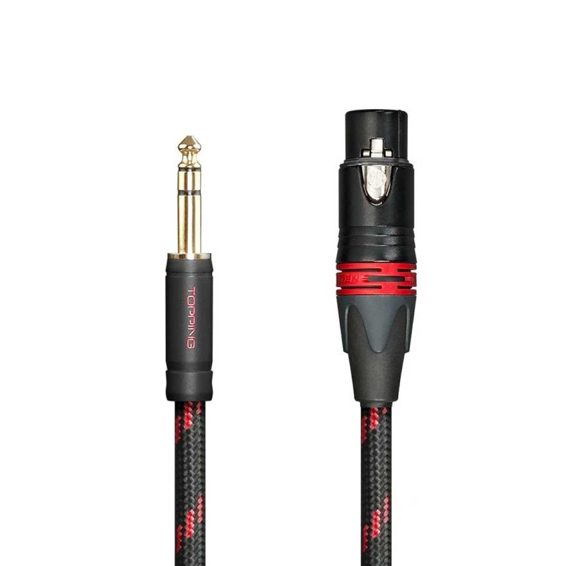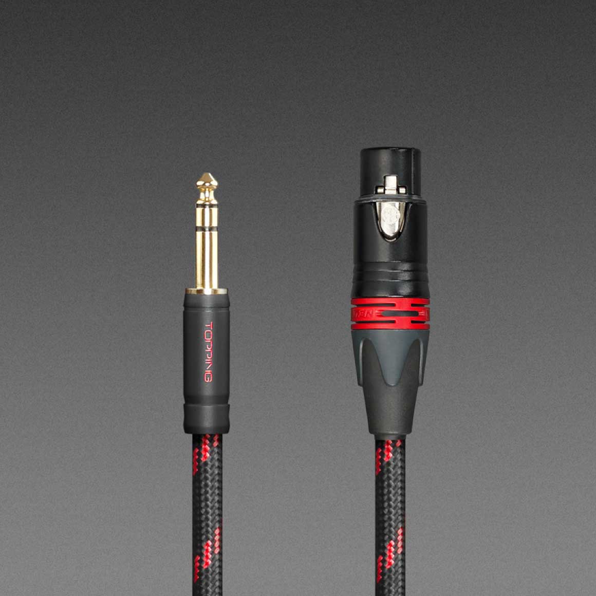 The Topping TCT3 cable offers a high-quality solution to connecting your audio devices and achieving perfect signal transmission. The TCT3 integrates 6N copper and 6N silver-plated copper conductors to achieve flawless transmission of audio. Each conductor in the cable has a section of 0.533mm² (19AWG), and the contacts of the connectors are gold plated to maintain an excellent conductivity while ensuring oxidation resistance. Each cable is coated with a beautiful and robust black and red braided nylon jacket. This cable features a Balanced 6.35mm TRS connector on one end and an XLR female connector on the other end to connect to your devices. In the package, you will receive a velcro for cable management and you will find two individual audio cables that are colour coded for the left and right sides.